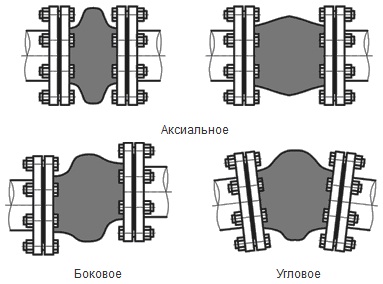 | DN, мм | Строительная длина | Максимальное рабочее давление при температуре 20°С , МПа | Аксиальное перемещение, мм | Боковое перемещение, +/- мм | Угловое перемещение, +/- ° | Присоедини-тельные размеры фланцев по ГОСТ 12815-80 исполнение 1, на давление, МПа | ||