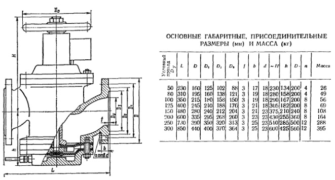 Присоединительные размеры фланцев: по ГОСТ 12815—67 на Ру 1 A0). Внутренняя поверхность корпуса и наружная поверхность деталей, соприкасающихся с рабочей средой, покрыта наиритом, а золотника — резиной.