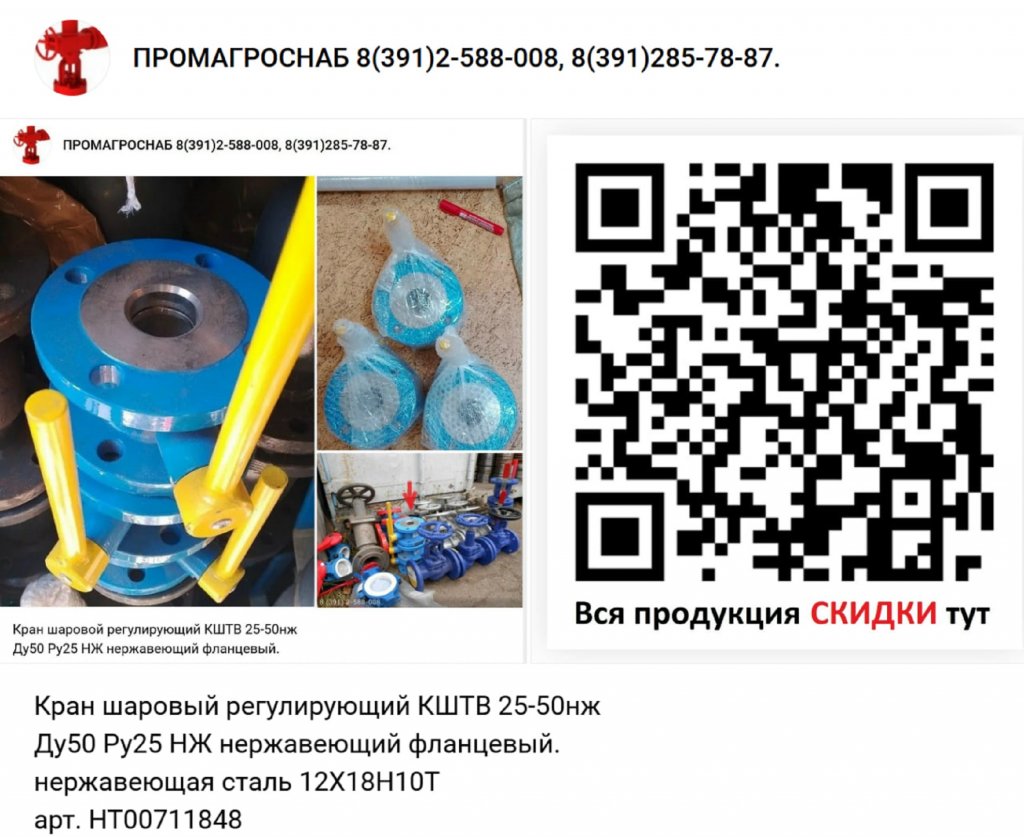 Кран шаровой регулирующий КШТВ 25-50нж Ду50 Ру25 НЖ нержавеющий фланцевый.