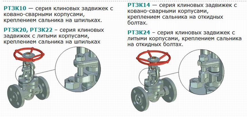 РТЗК10 — серия клиновых задвижек с ковано-сварными корпусами, креплением сальника на шпильках.
