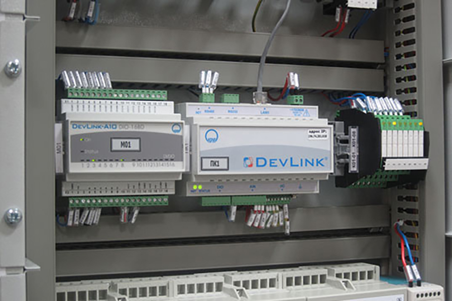 Компанией «КРУГ» в рамках проекта выполнен полный комплекс работ: проектирование, поставка оборудования, инжиниринг, монтажные и пусконаладочные работы. Произведена замена контроллерного шкафа ИИС (с подключением существующих датчиков) и АРМ операторов с обновлением программного обеспечения российской SCADA КРУГ-2000 до версии 5.1 (на базе операционной системы Astra Linux). Шкаф ИИС оснащен промышленными контроллерами DevLink-C1000 (на фото).