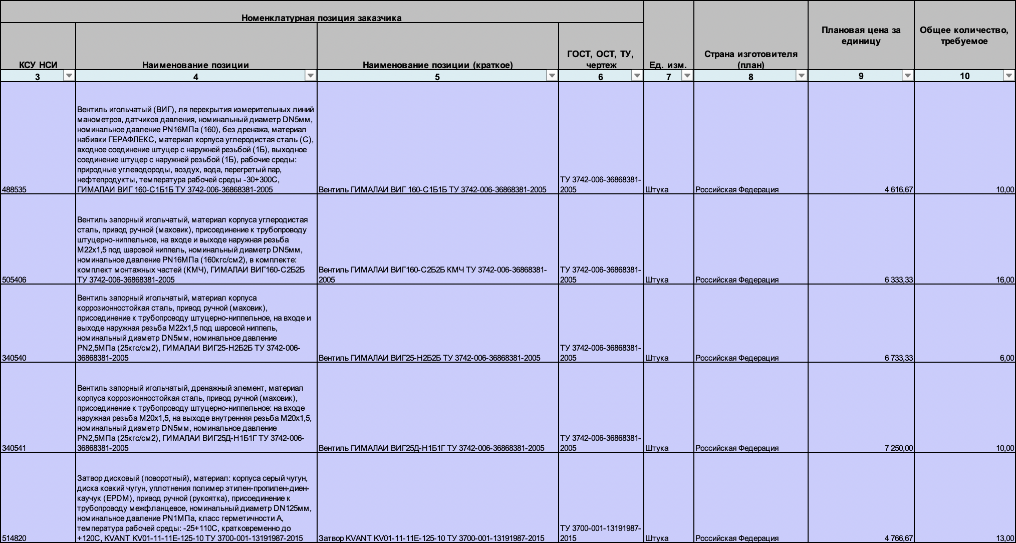 Наименование закупки: 222927/ОЗП Арматура запорная и регулирующая для ООО "БашРТС"