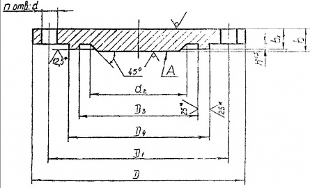 4) Исполнение 4 - заглушки под прокладку овального сечения на условное давление от 6,3 до 16,0 МПа (от 63 до 160 кгс/см2)