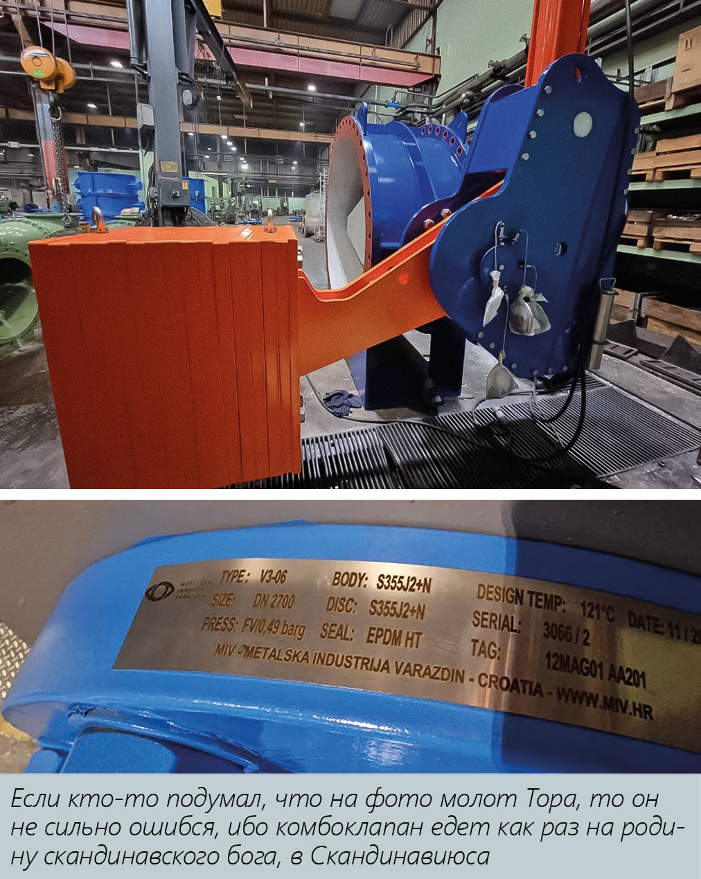 На MIV как раз проходила приемка комбоклапана для одной из деревационных ГЭС, Ду1800 Ру10, обратите внимание на размер «кувалды» – это свидетельство того, что напор на клапане недетский.
