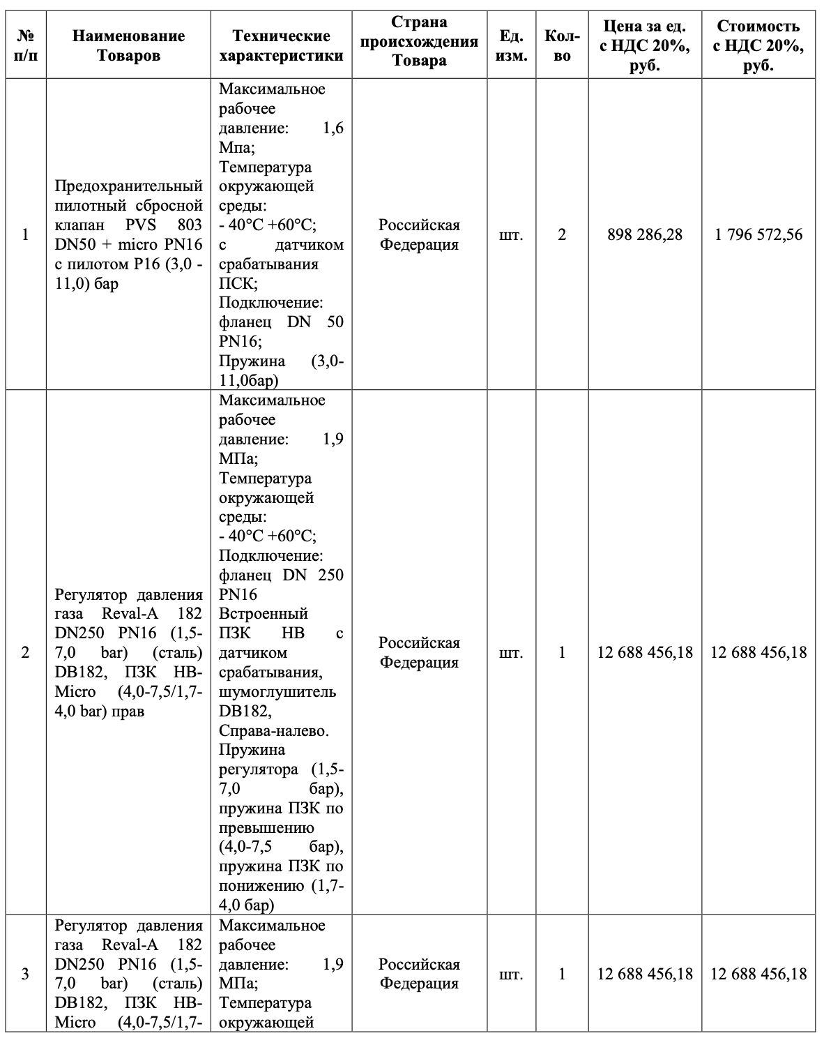 Объект закупки: Поставка предохранительных пилотных сбросных клапанов, регуляторов давления газа для АО «МОСГАЗ»