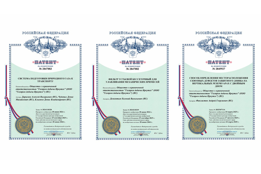 В 2025 году ООО «Газпром добыча Иркутск» получила три патента на изобретения. На сегодняшний день компания является обладателем 12 патентов на изобретения и одного патента на полезную модель. Кроме того, в минувшем году 598 сотрудников стали авторами 622 рационализаторских предложений.