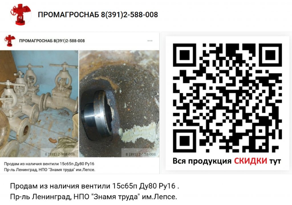Продам из наличия вентили 15с65п Ду80 Ру16 . Пр-ль Ленинград, НПО Знамя труда им.Лепсе.