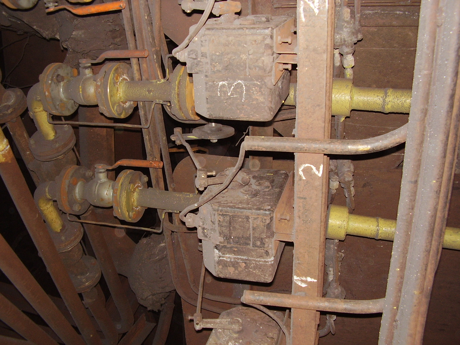 С другой стороны в домны подаётся шихта. Тут тоже боюсь наврать, потому что видела на Северстали устройство загрузки шихты в виде таких готовых кругляшков с ГОКа (это был "карельский окатыш", если мне не изменяет память) с помощью устройства, которое называется "грохот", а вот на Мечеле, как раз была модернизирована собственная агломерационная фабрика. На фото вы видите аглоленту, для подачи шихты, она длинная. Через неё "протягивают", с помощью воздуховодов, заслонок и механизмов воздух для лучшего спекания. Разогревают в печи в начале ленты, для этого подводят газ с помощью, как видите, "башковитого" привода АУМА (но голову ему там отключили - не требовалось.) Так же для этого процесса нужен пар. Подаётся с помощью клапана РУСТ-95 и ЗЭиМовского механизма МЭПК.