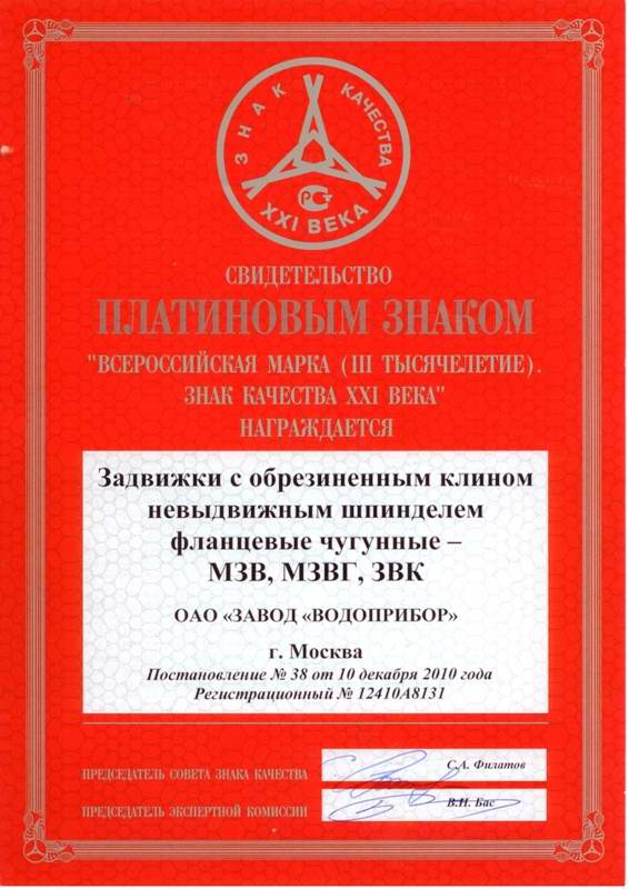 | Заголовок сообщения: | «Завод «Водоприбор» получил пять Платиновых Знаков качества | |||||