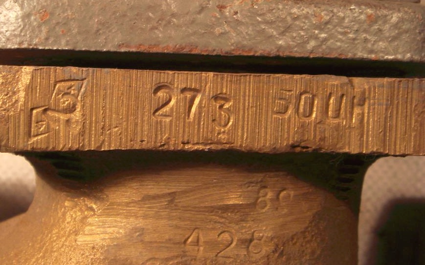 На корпусе следы зачистки, которые на менее чётком снимке можно принять за клеймо изготовителя, на верхнем фланце - штампики военпреда или госприёмки и ОТК.
