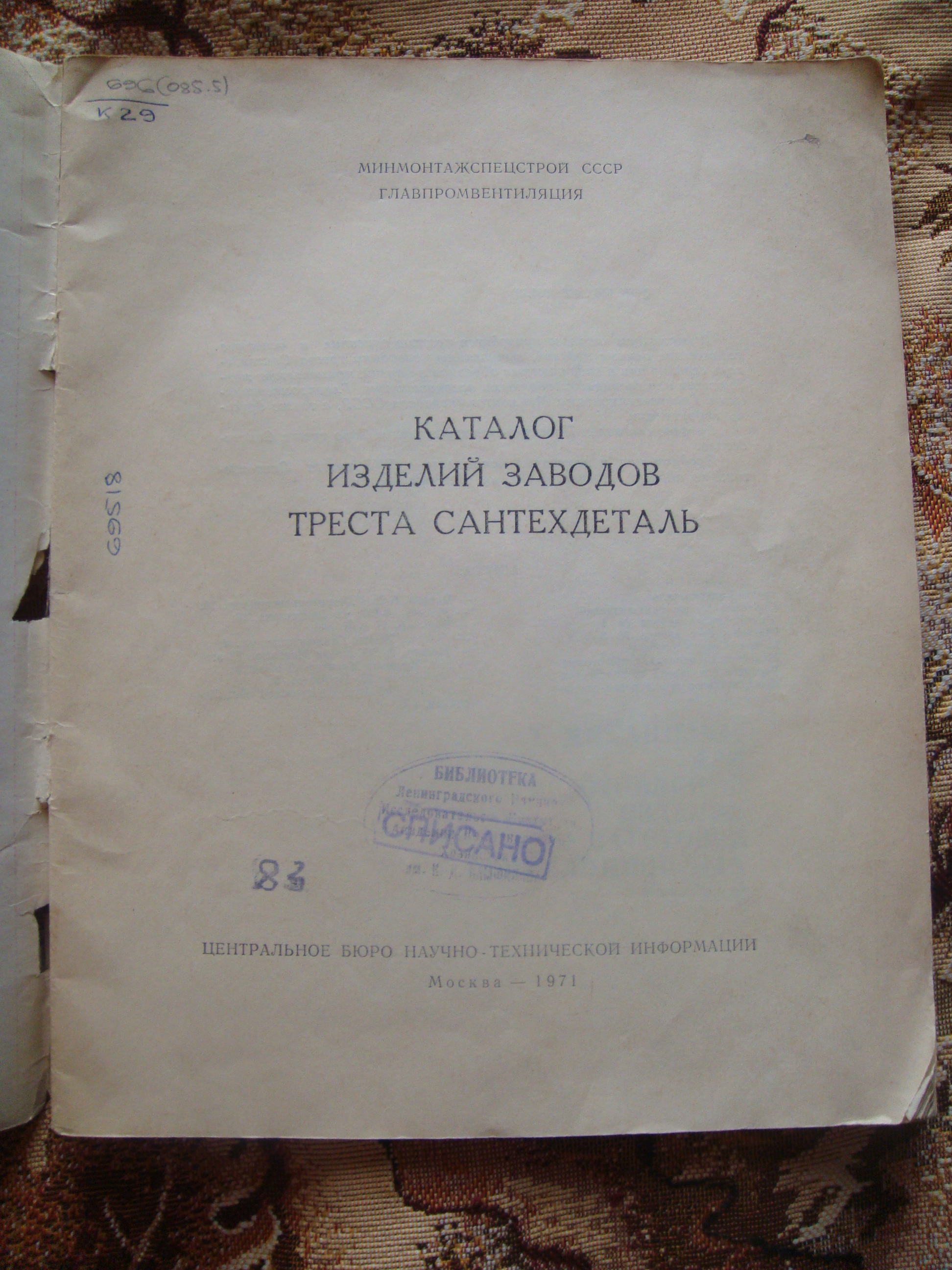 Каталог Изделий Заводов Треста "Сантехдеталь" 1971 год