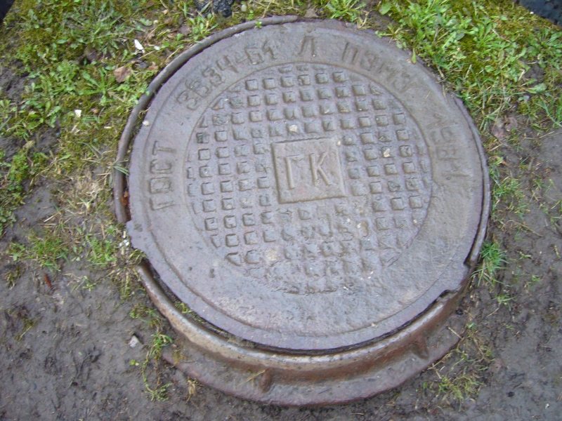 Крышек люков ЛТЗ (Лентрублит) в одном из дворов было очень много по ГОСТ 1961 года