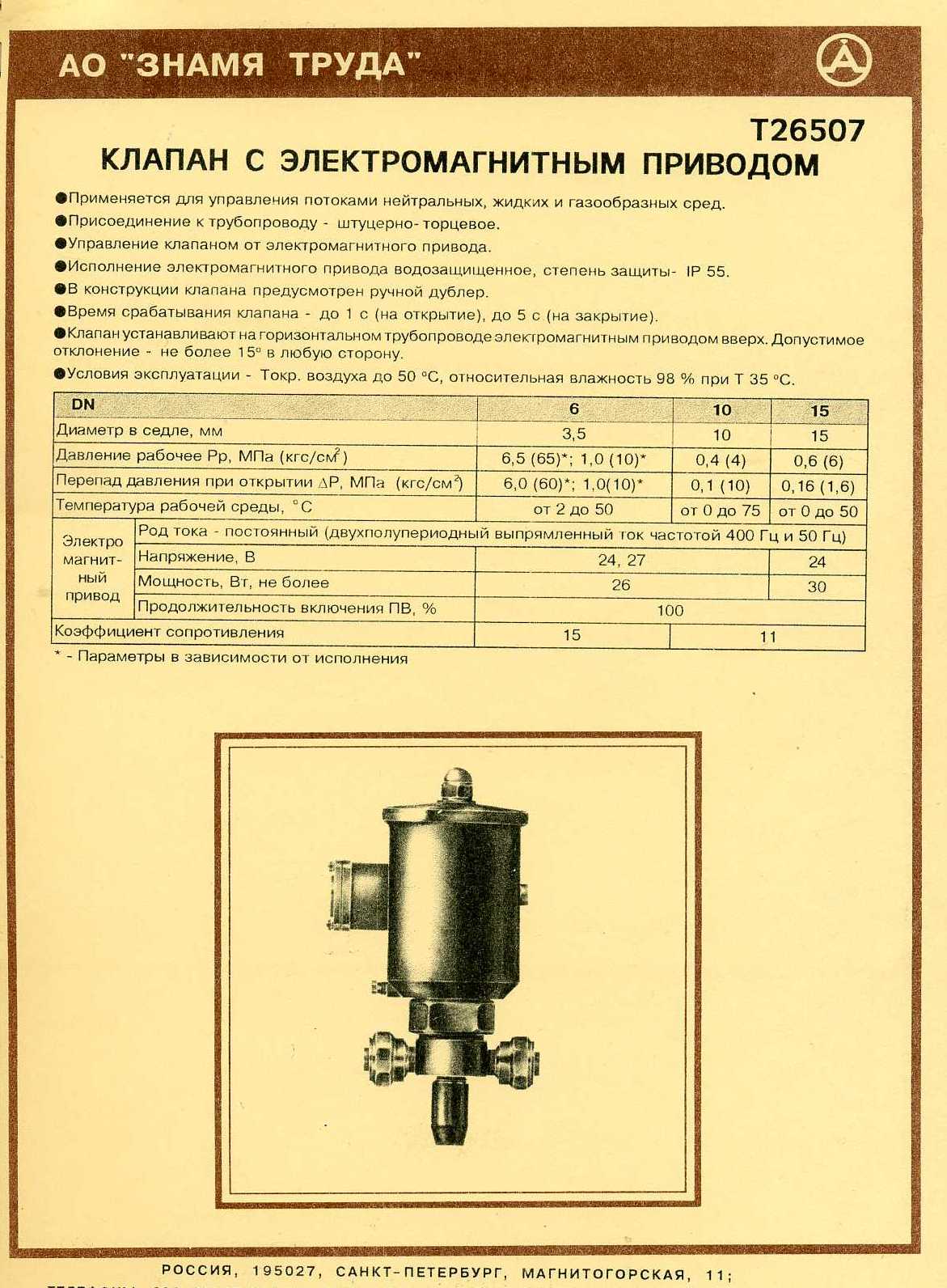 В настоящее время «Завод «Знамя труда», г. Санкт-Петербург - является одним из старейших предприятий России, специализирующееся на выпуске трубопроводной арматуры и приводных устройств к ней. Наличие полного цикла, научно-исследовательская и стендовая база, современный уровень производственных мощностей, высокая квалификация кадров позволяет выпускать широкую номенклатуру продукции высокого качества.