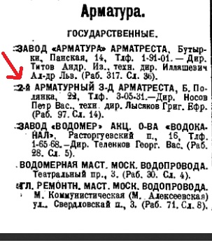 арматурной промышленности (1931-1932 года согласно архива)