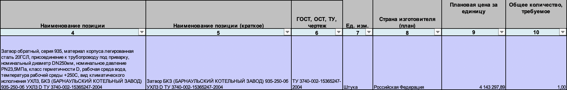 Наименование закупки: 224445/ОК Затвор обратный для Верхнетагильской ГРЭС