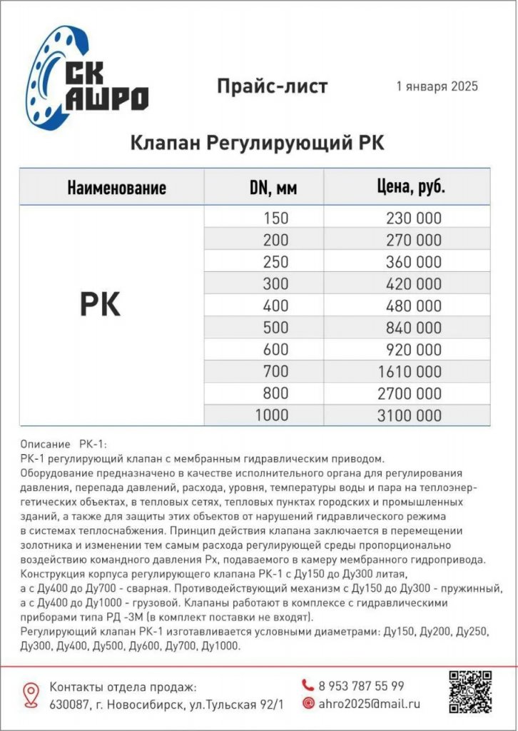 02.04 П Регулятор РПДС ду 80 1шт по 58000 Регулятор РПДС ду 100 1шт по 82000 продам OOO СК АШРО / ООО СК АШРО