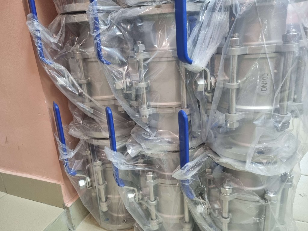 9) Кран шаровой трехсоставной 11нж01пф Ду100 Ру16, фланцевый, ст.AISI304, рукоятка, Китай – 14 шт – 16500,00 руб/шт