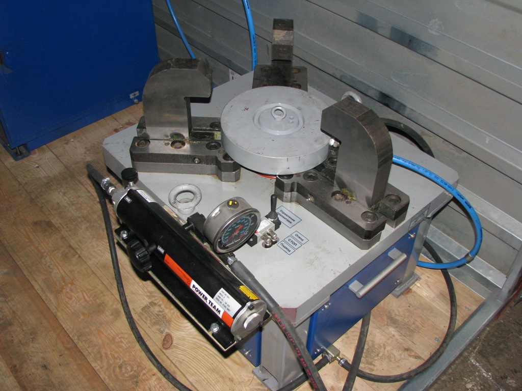 Продолжаем галлерею: Мобильный стенд для испытания и ремонта нефтепромысдового, противовыбросового оборудования в "поле" Ну конечно же это можно изготовить для ремонтного цеха. 1.1 Состав комплекса: - мобильный быстроразборный блок-контейнер; - стенд, оснащенный гидроприводом зажима и герметизации испытываемых изделий. Усилие зажима – контролируемое, регулируется пропорционально в зависимости от DN и PN; - станция оборотного снабжения испытательной жидкостью СтОЖ-1 емкостью 100 л; - насосная станция с регистратором давления испытаний НС-5 с выходным давлением до 105 МПа; - сменная оснастка с эластичным уплотнением для герметизации фланцев |