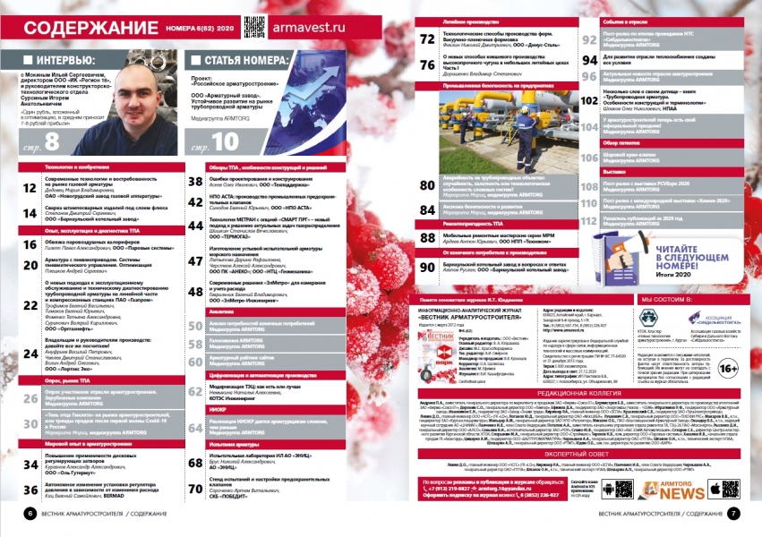 Таким образом, в новом выпуске «Вестника арматуростроителя» вас ждет интересный и уникальный материал о производстве трубопроводной арматуры и многом другом.