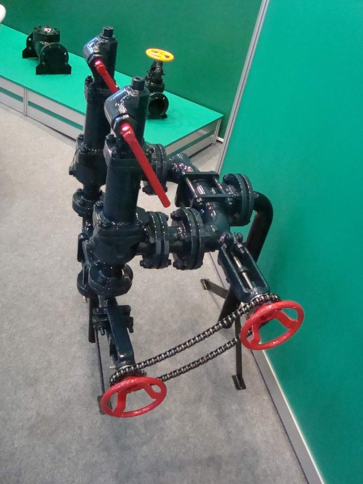 Из представленной продукции на стенде можно было оценить и рассмотреть продукцию завода окрашенную в темно-зеленые и темно-синие цвета с ярко-желтыми и красными рулями и маховичками. Присуствовали на стенде всем известны типы выпускаемой заводом арматуры, среди которых были: