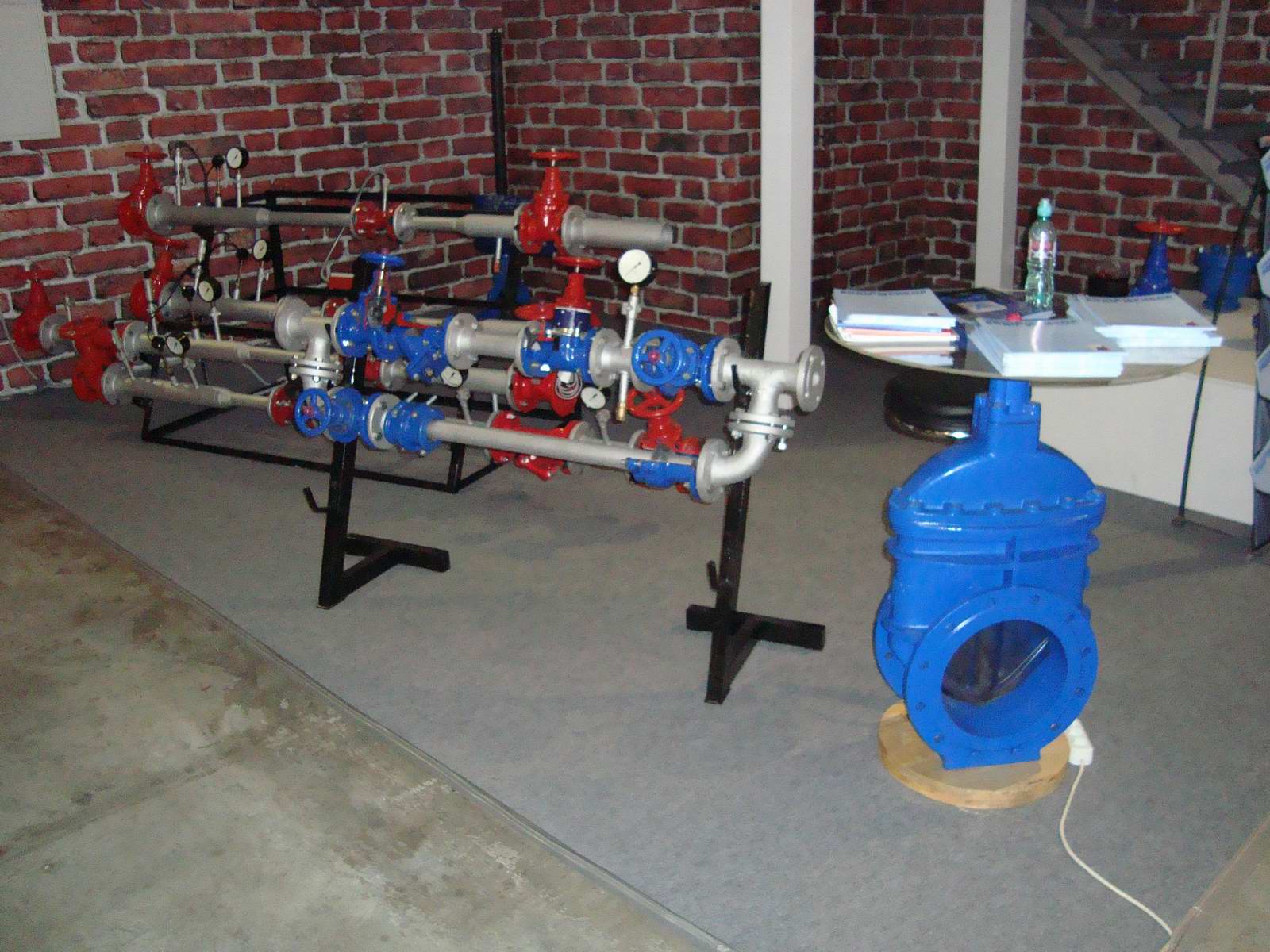 Стенд Московского завода Водоприбор был выполнен в виде подвального помещения, где обычно проходят теплоцентрали и коммуникации. Название завода говорит само за себя и с этим заводом многие арматурщики знакомы не по наслышке, т.к. предприятие имеет обширную дилерскую сеть по территории России. Завод продемонстрировал задвижки нового поколения с обрезиненным клином МЗВП, МЗВПР, ЗВК, МЗВШ, соединительные узлы, вантузы. Особым вниманием пользовались водомерные узлы. Накопив огромный опыт, квалифицированный инженерно-технический персонал, современную производственную базу предприятие в настоящее время осуществляет проектирование, изготовление, поверку, обслуживание узлов учета холодной, горячей воды и тепловой энергии на объектах заказчика. Впечатлило заявление производителя о задвижке ЗВК-100 - срок службы 50 лет. Такие цифры не каждый импортный производитель может дать. Кроме приживающейся традиции использовать большие задвижки под удобные столики, представители компании сделали интересный стенд на котором собрали большинство типов предлагаемой водозапорной арматуры. На мини комплексе наглядно было видно место применения разнообразных фильтров, счетчиков и задвижек. Жалко что сам стенд не работал, интересно было взглянуть весь на рабочую версию этого комплекса.