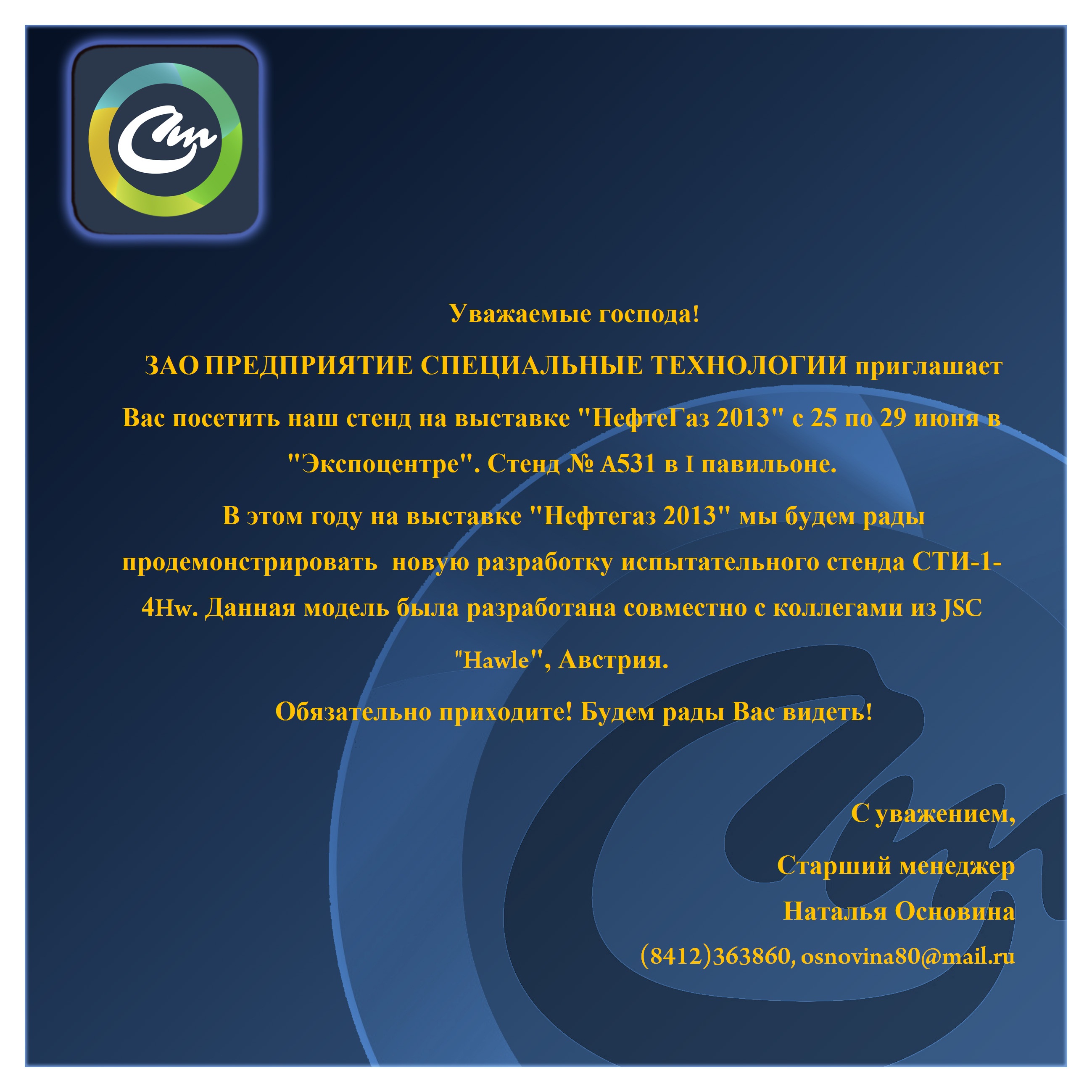 Наташа, спасибо, оперативно. АБС Электро традиционно ведёт репортажи с выставок он-лайн: http://www.abselectro.com/press/news/tr ... -gaz-2013/ |
