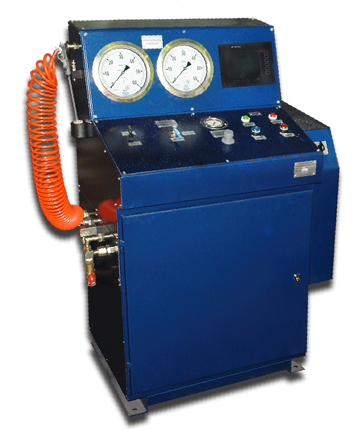 Данные источники давления позволяют:- после выбора оператором в компьютерной системе диаметра и номинального давления станция автоматизированно набирает испытательное давление и поддеривает его на время испытаний;