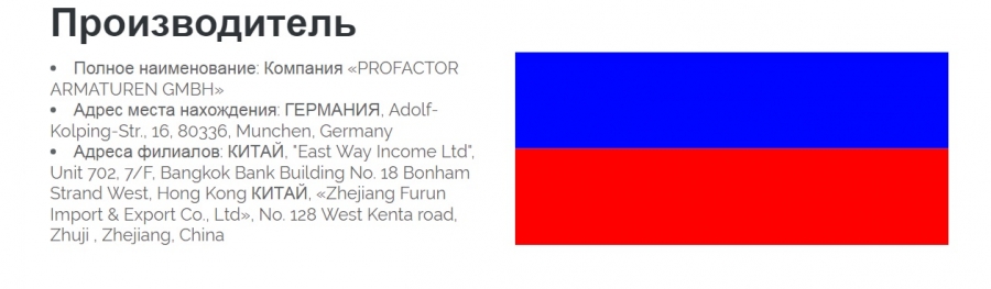Каким "немецким Специалистам компании PROFACTOR Armaturen GmbH"!? :)) Это профессиональному мошеннику Левенстаму Алексею Игоревичу, организатору международной преступной группировки, которая обманывает покупателей, таможню и налоговые органы нескольких стран? Или сказочнику Гасимову Анару Аллахверди позывной для российких СМИ "Густав Райш"? В Германии ни о каком Profactor Armaturen GMBH вообще не знают, а весь офис и все производство профессионального афериста Левенстама Алексея Игоревича умещается в почтовом ящике на Адольф Колпинг штрассе 16 в Мюнхене