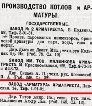 и значился тогда,как бывший,а уже в 1924 году был переименован в Завод "Арматура"