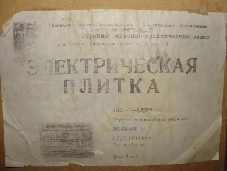 159.71 КБ, Просмотров: 44349 Re: Кто узнает производителей? / ТЗ Сурское (р.п., Ульяновская область). Сурский литейно-механический завод. Плитка электрическая ЭПШ-1-0,8!220. 1990. Фото3. С olx.ua.jpg