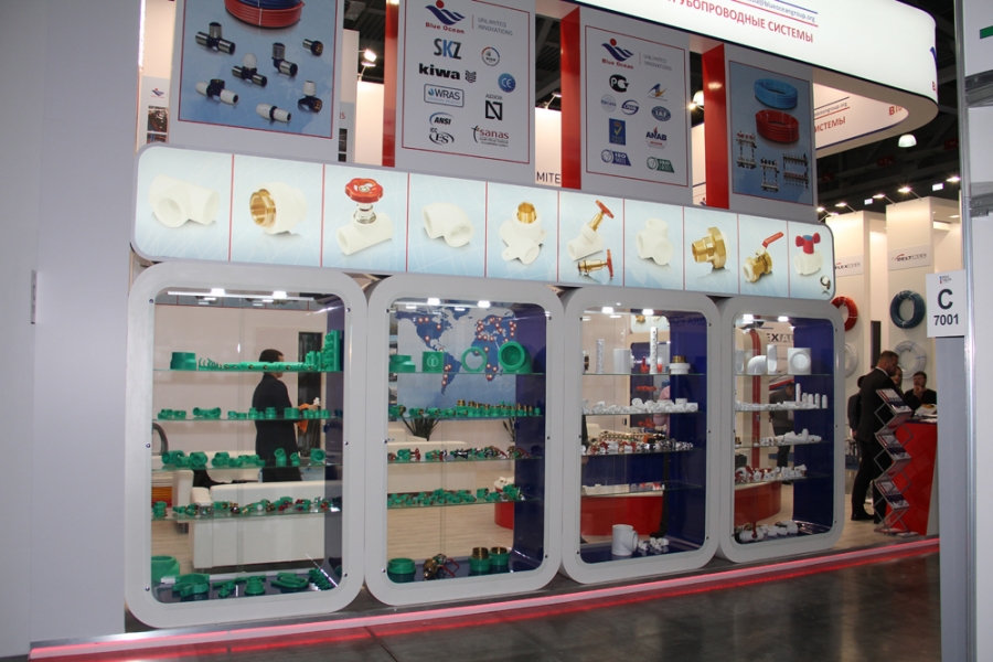 На выставочном стенде Heisskraft были представлены комбинированные полнопроходные шаровые краны для отопления, изготовленные из итальянской латуни, радиаторные пластиковые вентили, предназначенные для регулирования величины потока и климата в помещения, а также полипропиленовые и полиэтиленовые системы.