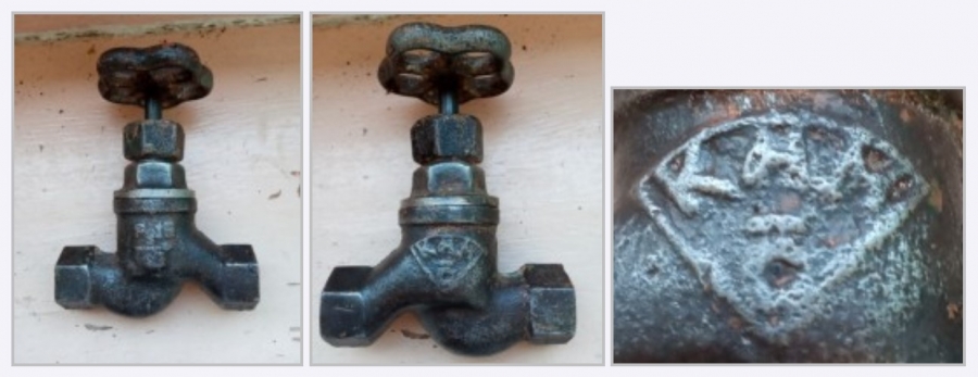 Есть немецкий товарный знак на водяной колонке из Калининграда.Кажется очень знакомым, но никак не могу найти в своём архиве.И выложу два фото ручных насосов (не для расшифровки).На них "гулаговские" товарные знаки с датами, которые являются самыми поздними по времени применения соответствующих ТЗ из тех, что попадались мне на глаза.