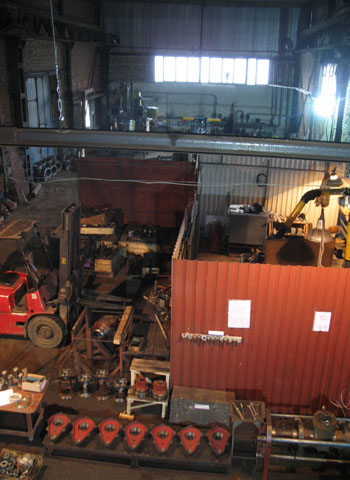 Испытания арматуры делаем на гидростенде, разработанном нашим конструкторским бюро. Стенд аттестован. Крупной фотографии в данный момент нет, но стенд немного виден на обзорной фотографии цеха на переднем пла