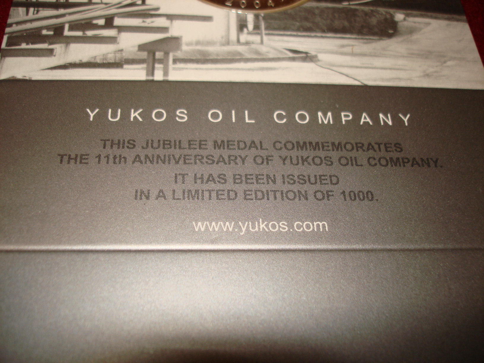 Уникальная оригинальная настольная медаль, выпущенная к 11-летию Нефтяной Компании ЮКОС в 2004г.