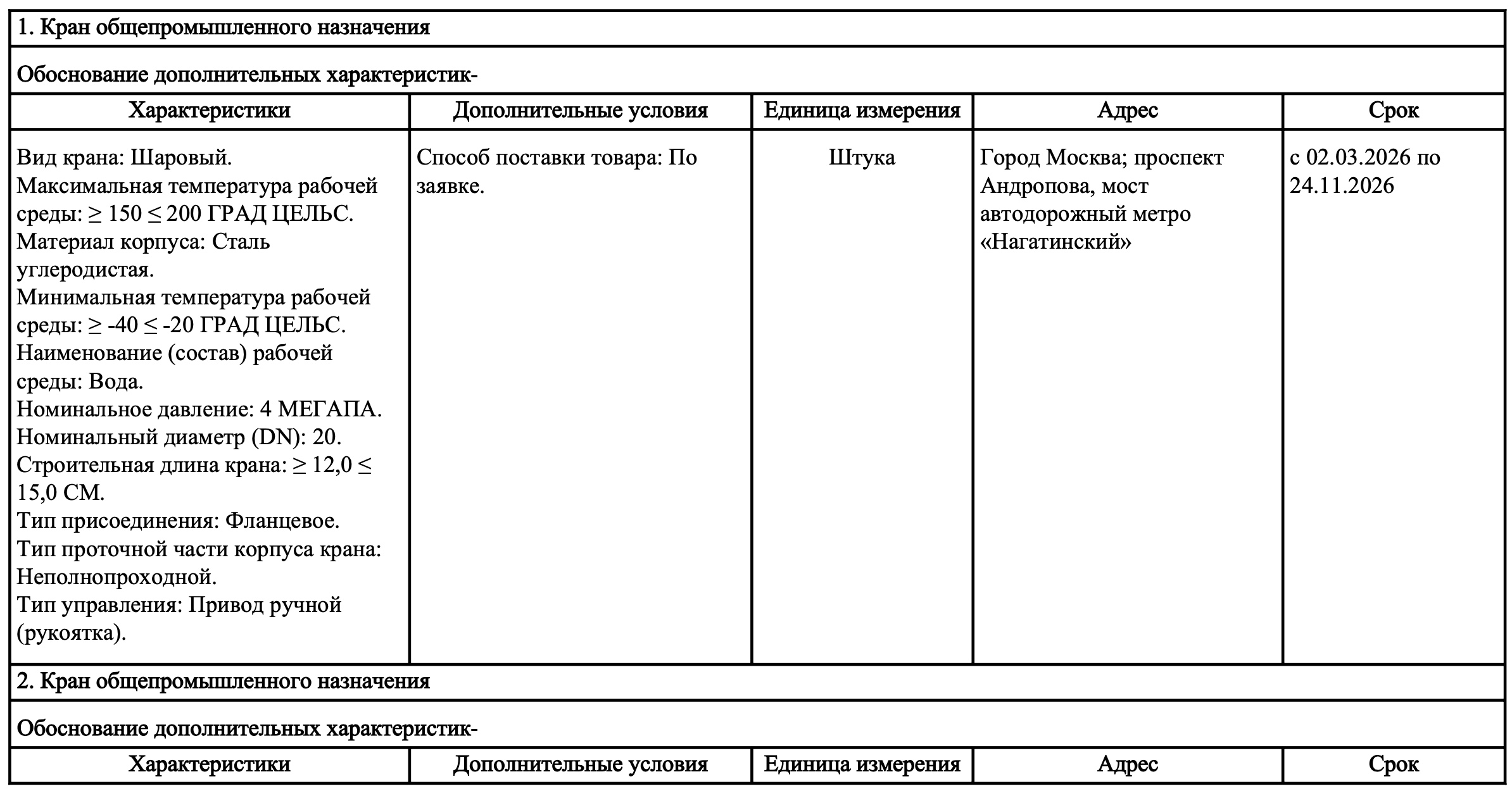 Объект закупки: Поставка запорной арматуры