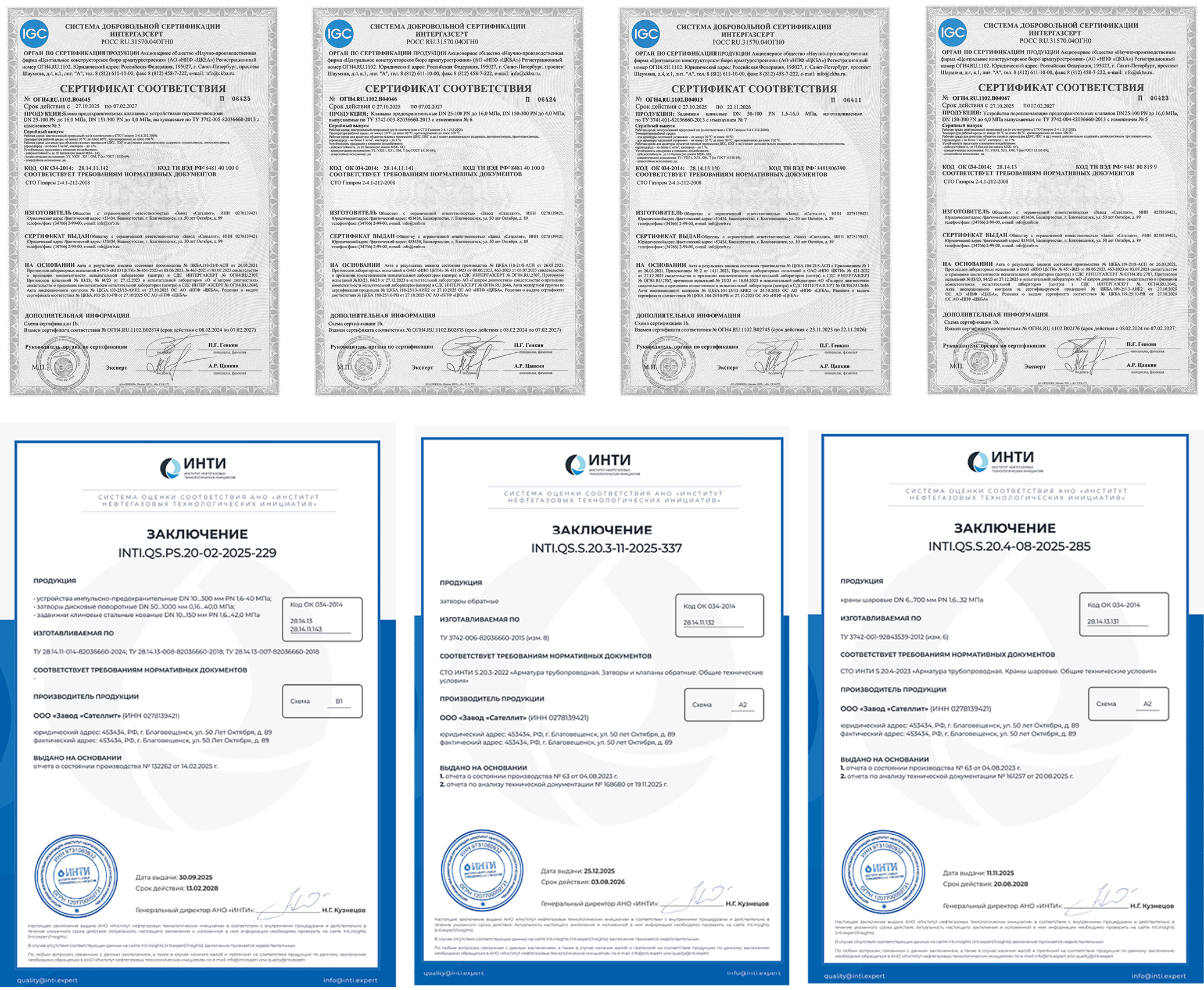 В октябре ООО «Завод «Сателлит» получило заключение Института нефтегазовых технологических инициатив (ИНТИ) на следующие виды продукции: