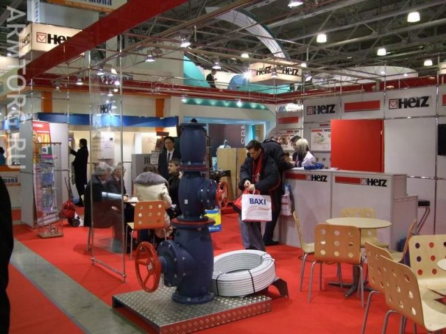 Немецкая HERZ Armaturen во главе своего стенда выстроила вот такую колонну из вентилей